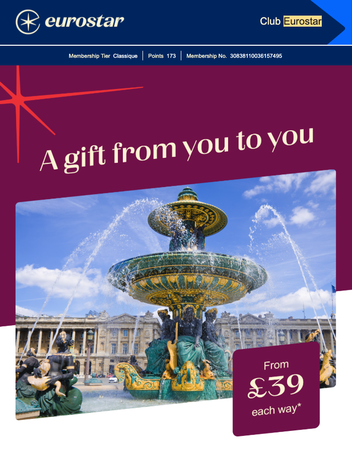 Eurostarのセールは、ネットの情報の他に、会員登録をするとメールマガジンが届くようになります。