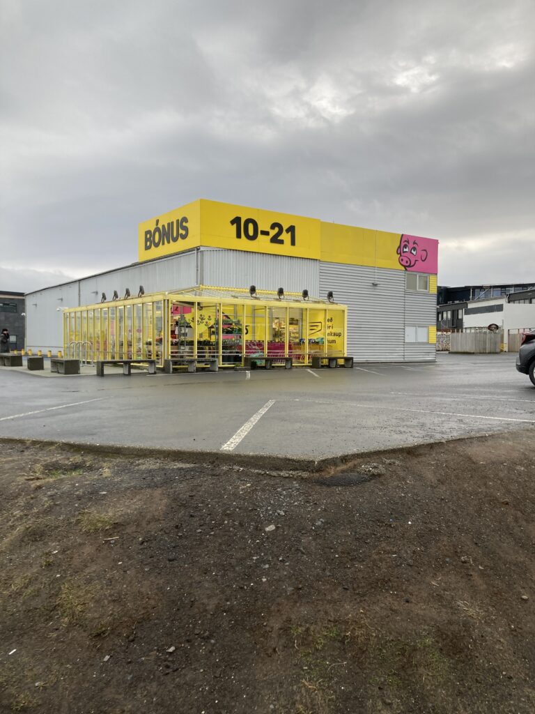 こちらは、アイスランドのスーパーの中でも格安の分類に入るもので、いってしまえば業務スーパーみたいな感じ。ピンク色のブタがトレードマーク