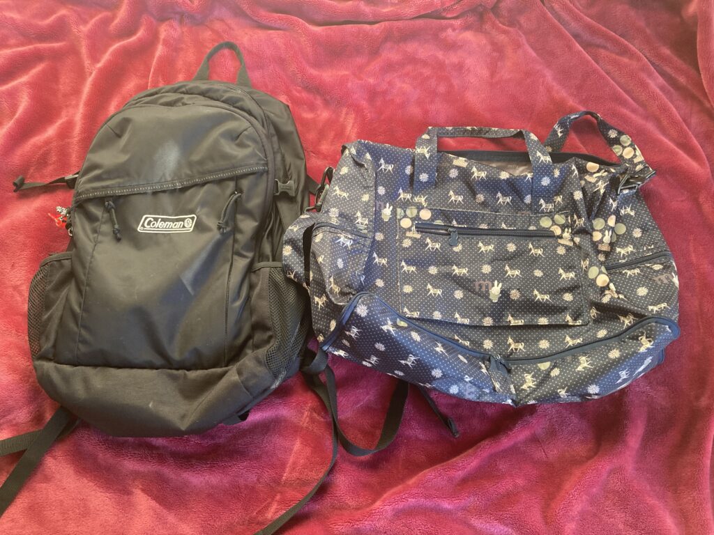 私は、リュックと、折り畳めるボストンバックの2つを利用していました。