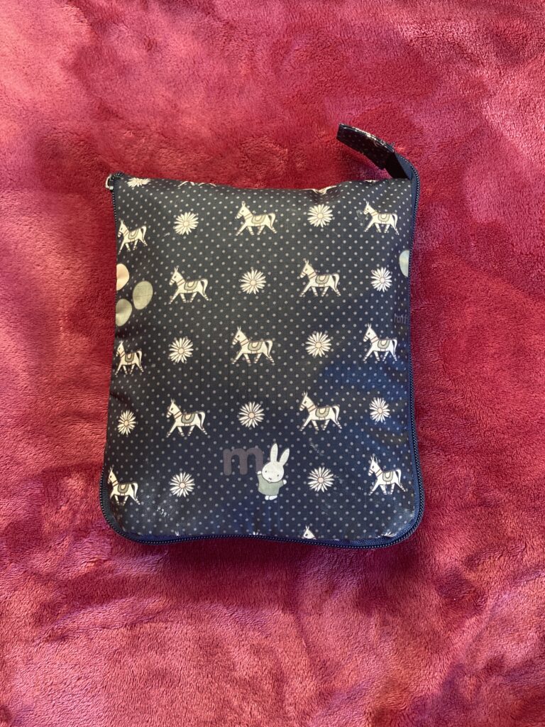 このバッグは折り畳めるバッグになっていて、使わない時は折りたたんで小さくできます。